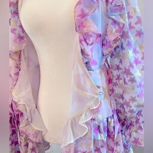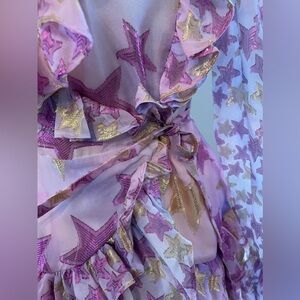 NWT’s - LoveShackFancy - Findlay Long Sleeve Ruffle Wrap Mini Dress - Purple Metallic Star