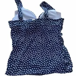 Ann Cole Take It Or Leaf It Tankini Top 36 B/34C navy blue and white