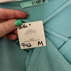 Beautiful teal color with a criss cross in the front. The sleeve length is about 3/4!