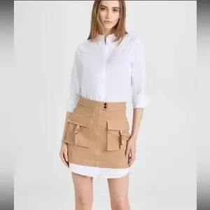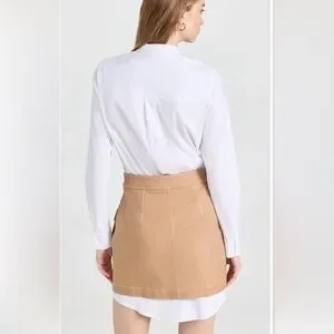 The Jennings is the newest addition to our best-selling series of mixed-media garments. Pre-layered for maximum impact, minimal effort, the dress combines a twill miniskirt with a crisp button-down that peeks out from the hem for an extra dose of nonchalance. Cargo pockets and contrast-color stitching complete the look. Pair with sky-high stilettos for a girls' night out—the ultimate in relaxed meets refined.