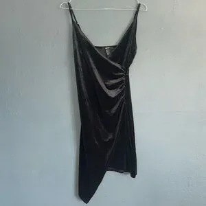 FOREVER 21 VELVET BLACK ASYMMETRICAL BODYCON MINI DRESS