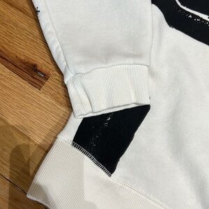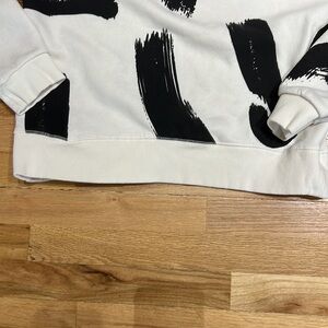 Zara preloved black and white sweatshirt size S❤️🔥🍁 This sweatshirt offers elastic waistband and wrists with a fleece inside keeping you warm for the entire campfire🙌 This beautiful black textured paint streaks have an awesome texture giving them a 3D feeling💃💃 There is no better pairing than white and black👌 This beauty can go with literally ANYTHING…shorts, jeans, leggings, skits, you name it goes🙌😍 There is no staining, ripping, holes, or loose strings and has been freshly washed✔️ This beauty is a must have in every ladies closet🎉🎉