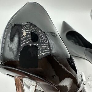 Insanely gorgeous YSL OPYUM pumps. Size 41. Black patent with chrome heels. One mark in the patent on the inside of the left heel. Toe tips are almost perfect. These have only been worn indoors at events.