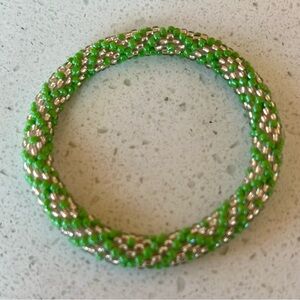 SASHKA Co. Bracelets are crocheted using glass beads & cotton thread. This allows the bracelet to roll over your hand & retract to your wrist for fit. Every Bracelet is handcrafted by a skilled artisan in the Kathmandu Valley of Nepal.