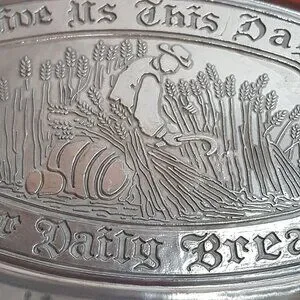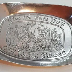 Give Us This Day Our Daily Bread Hand Cast Aluminum Bread Tray Vintage 1977 New