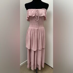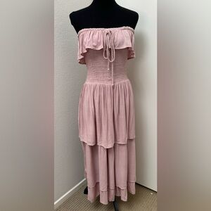 Jen’s Pirate Booty pink tiered strapless halter smocked ruffle Annabella dress
