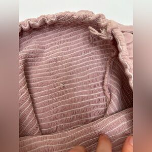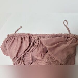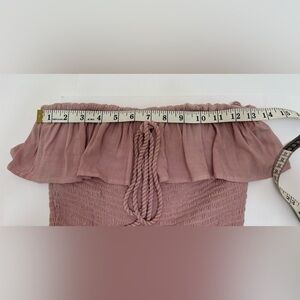 Can be worn as halter or strapless with tied strings. Very soft fabric! Very stretchy in the upper bodice to allow for many sizes. Could accommodate small as well - my mannequin is 34-26-35