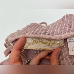 (Tag says, “hand wash in the ocean, hang from a palm tree, or lay dry on the sand” in gold 😍
