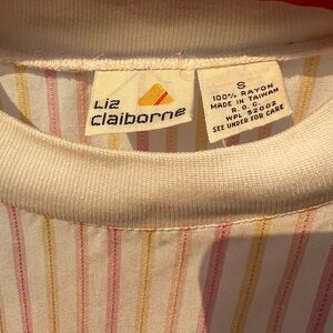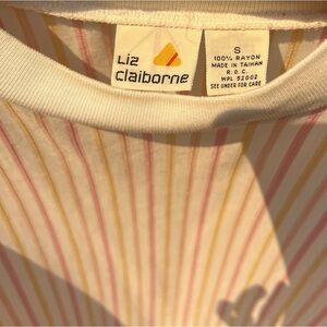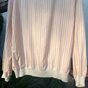 Vtg Liz Claiborne Pink, Yellow, White Striped Long-Sleeve Pullover Top | Small