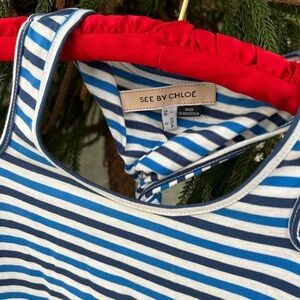 See by Chloé Blue & White Stripes Cotton Peep-Shoulder Racerback Dress | Small
