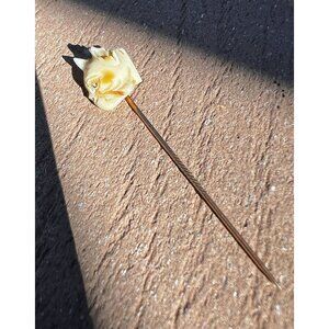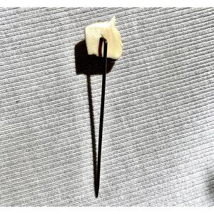 Antique hat pin featuring a hand-carved bone cat head. Ideal for hat or lapel decoration.