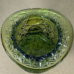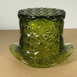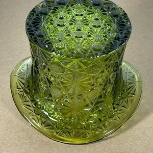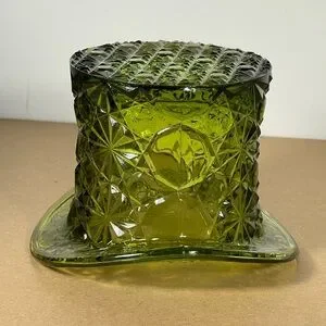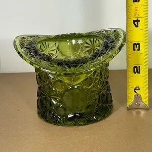 Vintage Fenton Large Top Hat Daisy Button Avocado Green Glass Vase 3.5" tall B50