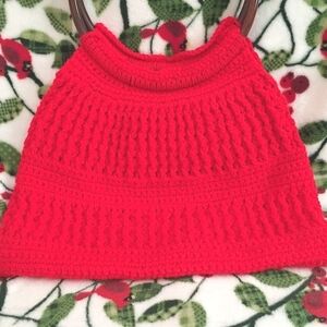 🌺Like New Vintage 70s Style Handmade Red Crochet Wood Handle Bag🌺