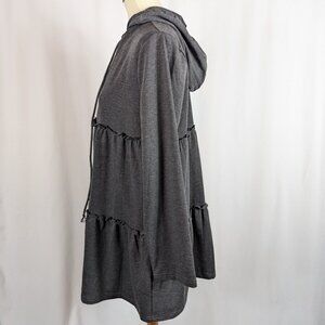 Grace Karin Gray Tiered Ruffle Hoodie Tunic Top Dress Womens Sz Medium M NEW NWT