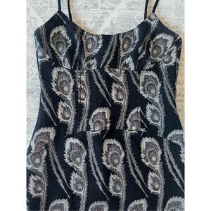 TRINA TURK Black & Silver Peacock Pattern Spaghetti Strap Cocktail Dress Size 2