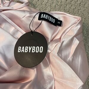 Baby boo maxi dress open back slit low front pink blush never wore still has tag