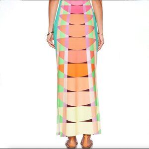 MARA HOFFMAN's column maxi skirt in color beams yellow, from 2013 I believe (don't quote me!) is a simplistic stunner. Easily paired, and styled.. fabulous for vacation and summertime's easy dress code. Gorgeous as a pull on cover up for swim. 94% Viscose 6% Elastane. One small stain, looks like a pen mark maybe, barely visible.. lat photo.