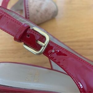 Stewart Weitzman Red Patent Leather Slingback Peep-toe Wedges. Women’s Size 10M