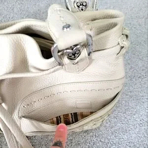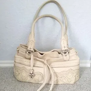 -Beautiful detailed Brighton Leather Applique Embroidered Handbag, Magnetic Closure