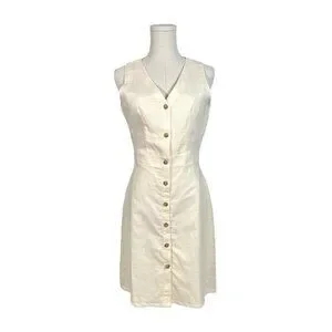J. Crew Cream Linen Cotton Blend Button Front Sleeveless A-Line Dress Size 0