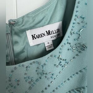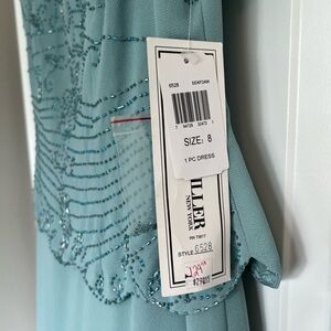 Seafoam green gown-never worn. Lovely beaded detail at the top with a little sparkle. Short sleeves. One piece dress with the illusion of two. Still with tags.