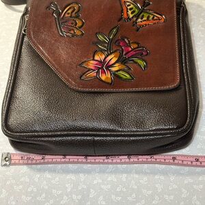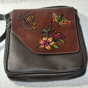 Leather CrossBody Hand Tooled and Painted with Butterflies and Flowers NWOT