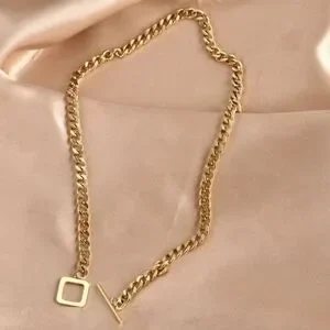 This statement necklace is a fusion of elegance and durability. Crafted with precision from premium titanium steel and coated in lustrious 18 karat gold plating, this next necklace exudes luxury while maintaining resilience against tarnishing and corrosion.