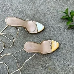 FEMME LA Athens Lace Up Heels in Golden