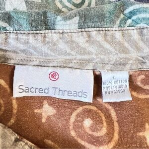 Sacred Threads Multi Print Patchwork Top Size L Womens Collared Cotton Southwest
