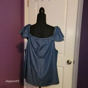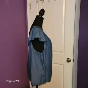Classy Denim Chambray Flutter Shirt than can be worn off shoulder for a Summer Look