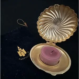 Partylite Travel Tealight Holder. Brass. Folds closed. Includes travel bag. Tealight not included.