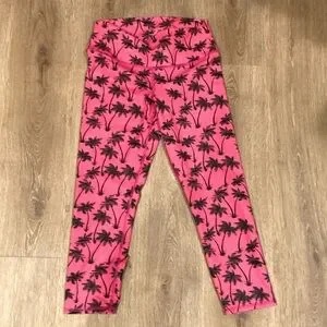 Women’s hot, pink palm tree, yoga, pants, size medium