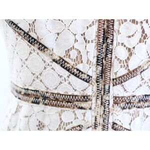 BCBG Max Azria Andreea Ivory Block Lace Illusion Cheetah Trim Sheath Dress Sz 6