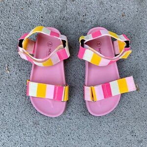 SEED Girls Stripe Sandals 7.5 24 NEW Toddler Girl Pink Yellow Shoes Stripes