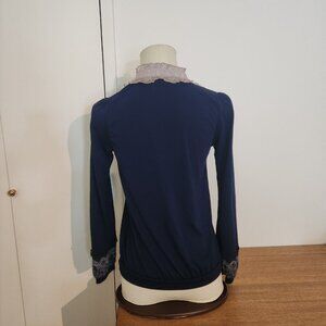 vintage Axes Femme High ruffle collar Navy blue Victorian style shirt size M