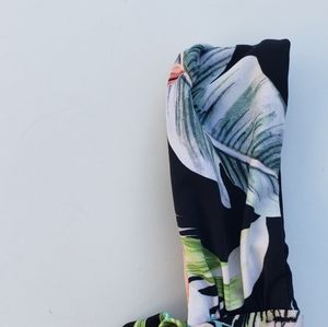 JANTZEN one piece swimsuit. Features include a beautiful floral pattern. wrap bodice and ruching at the sides. Bodice is lightly padded and back has the JANTZEN signature metal logo. Mesh lined interior. Like new condition.