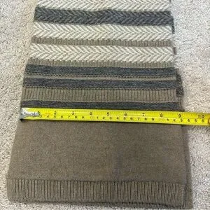 Banana Republic tan brown gray cream striped warm fall winter knit scarf