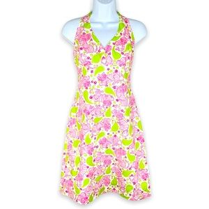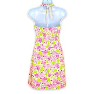 Lilly Pulitzer White Label Pink Blackjack Cat Print Halter Dress Size 2