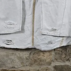 31.25" long at shortest front hem (beside split), 15.5" unstretched waist