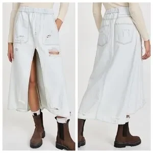Distressed Bel Air Blue Shabby maxi skirt with high front split, women's size MEDIUM. Elastic stretch waist. NWT!