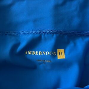 Ambernoon bathing suit, pretty flowery print with royal blue bottoms, this is a two piece bathing suit with good coverage.