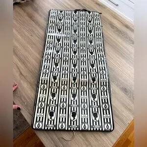 Perfect for the girl on the go. Just fold up and throw in your bag! Has a hanger for easy access . All zippers work. There are a few spots where labels stuck to the plastic but otherwise is great shape. Freshly cleaned and washed. This does not have a snap or tie. It folds into a perfect rectangle. Pls look closely, there is a small red mark (Pictured)
