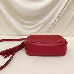 Gucci Red Leather Soho Camera Crossbody Bag Size/Measurements: 6"W x 4.3"H x 1.75"D