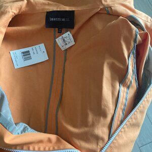 Important Note: Although never worn, there is a tiny dot mid-front which is barely visible without magnification. It's like a spec of pepper and must have happened as a result of retail handling. I only noticed it when inspecting for posting. The 6th and 7th pictures focus on this and I used a tape measure and straight pin to provide a realistic baseline for just how small it really is. I'm not happy about it but, fortunately, it is so tiny that it does not catch the eye, detract from the look or impact garment wearability.