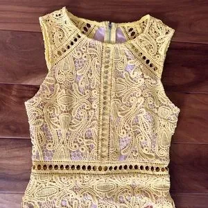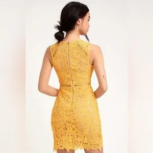 Lulu’s Dream Life Yellow Lace Bodycon Dress size XS