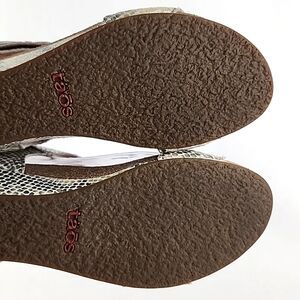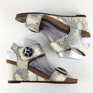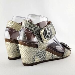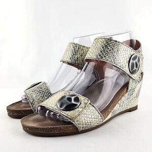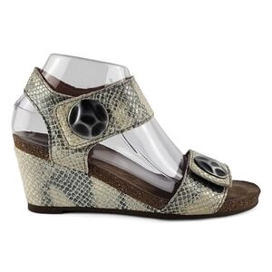 Taos Women's Carousel Beige Grey Leather Snake Print Wedge Sandals Size 37