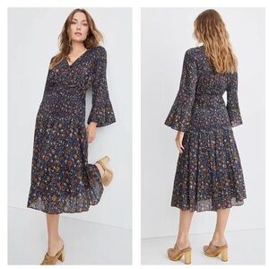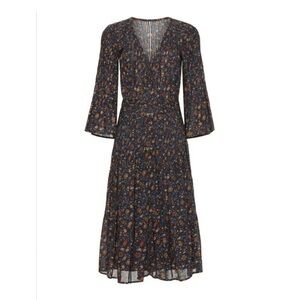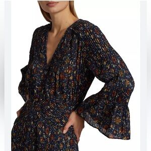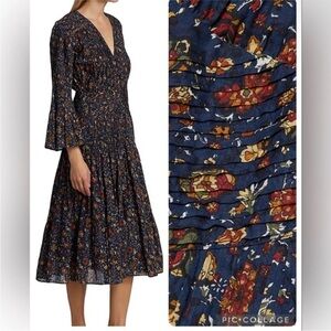 Veronica Beard Shireen Pleated Floral Midi-Dress Ink color Size 2 NWOT Romantic