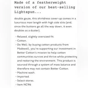•new• MADEWELL Lightestspun Coverup Maxi Shirt Dress