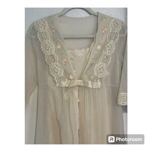 Vintage 1950s Shadowline Pale Yellow/Cream Long Gown Lingerie & Robe Size Small