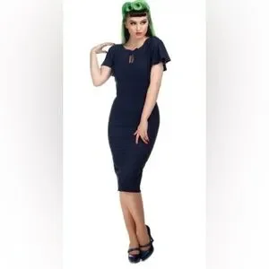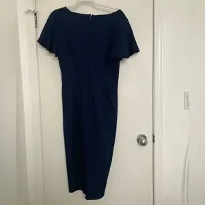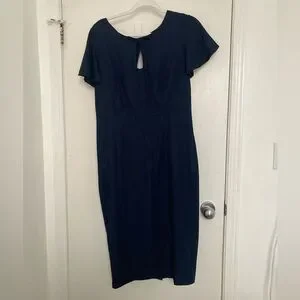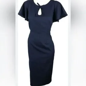 With a keyhole and bow at the front and the wide flutter sleeves this pencil dress is very flattering. UK 12 or US 8. New without tags.